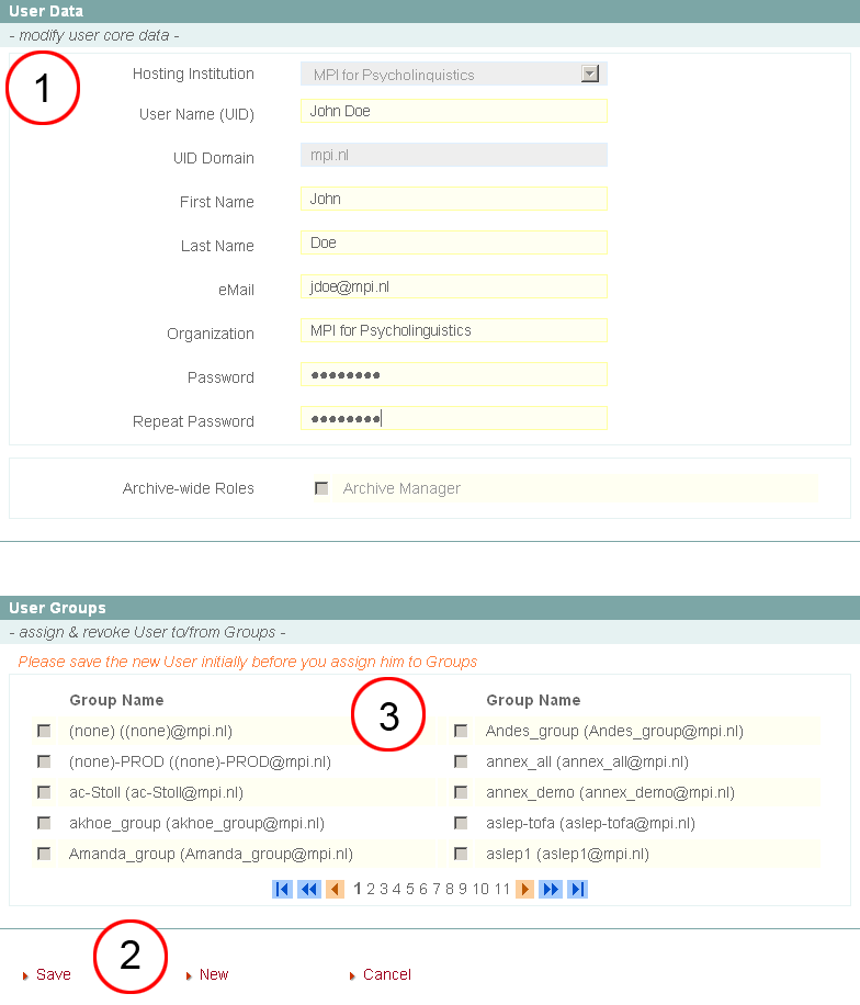 do this only if you are an Archive Manager yourself). Save the user data by clicking on