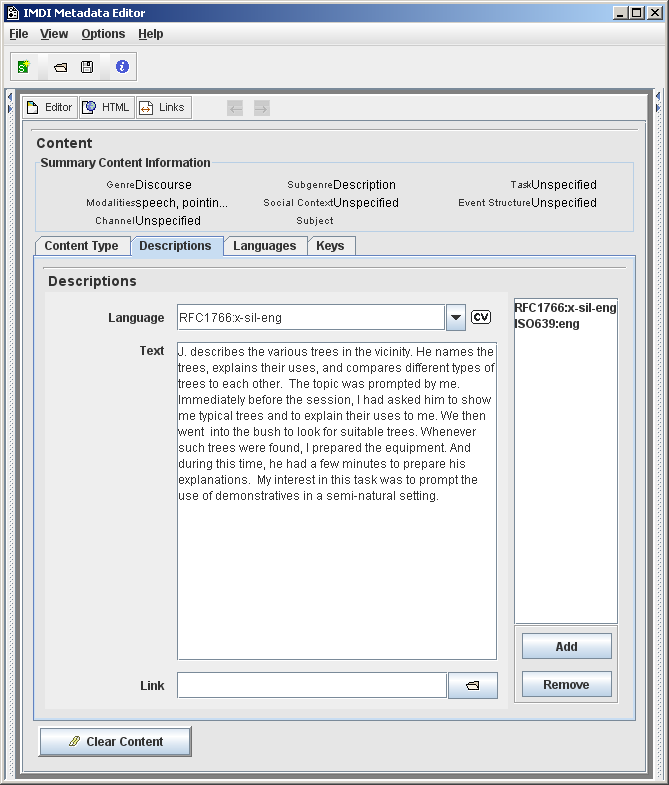 See Section A.1 for instructions on how to fill in a Descriptions schema. Remember: The field Language refers to the language in which the description is written - not to the language under investigation.
