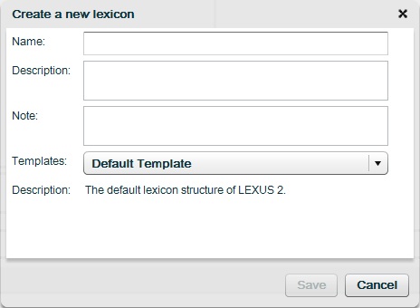 Templates are different predefined structures for new lexica based on the LMF. At this moment LEXUS provides you with the Default Template but soon more templates will be made available.
