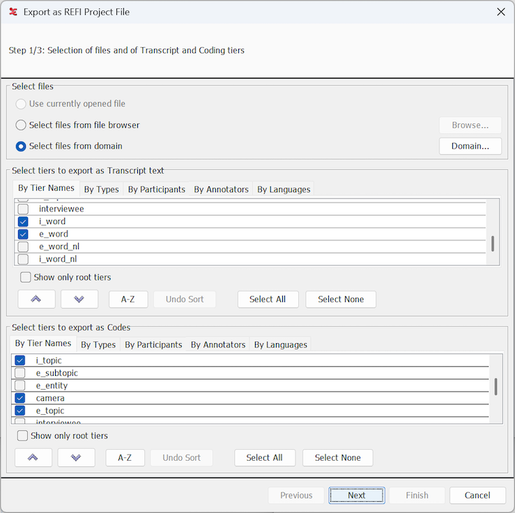 At least one tier should be selected, in either the Transcript or the Coding tier table, in order to be able to proceed to the next step.